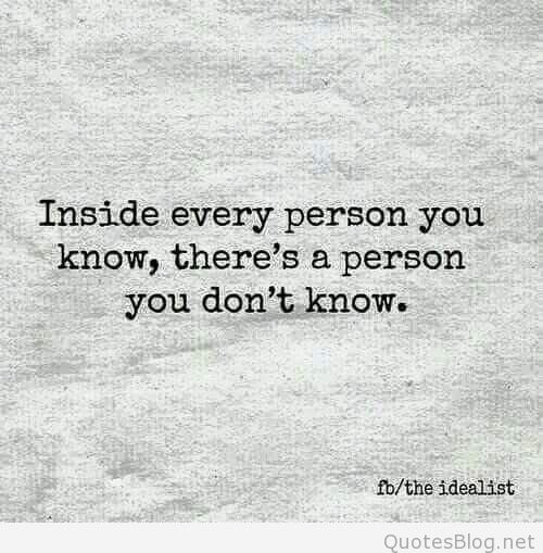 Walaupun lo ketemu dia tiap hari selama 3 tahun lo satu sekolah atau bahkan satu kelas terus sama dia.. tetep aja.. gak bakal ada perkembangat pesat tentang apa yang lo tau tentangnya. Dia hanya menunjukan apa yang ingin dia tunjukan kepada orang lain! ngerti gak? Pas di rumah mungkin aja dia jadi orang yang berbeda.. ya kan? Seseorang bisa milih apa yang mau dia tunjukan kepada orang lain.